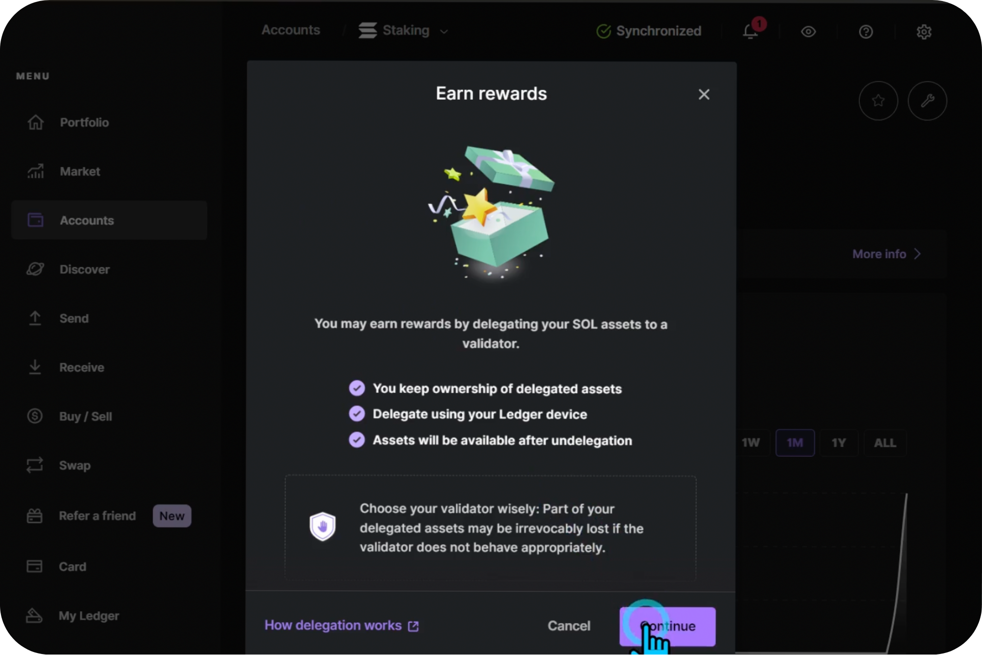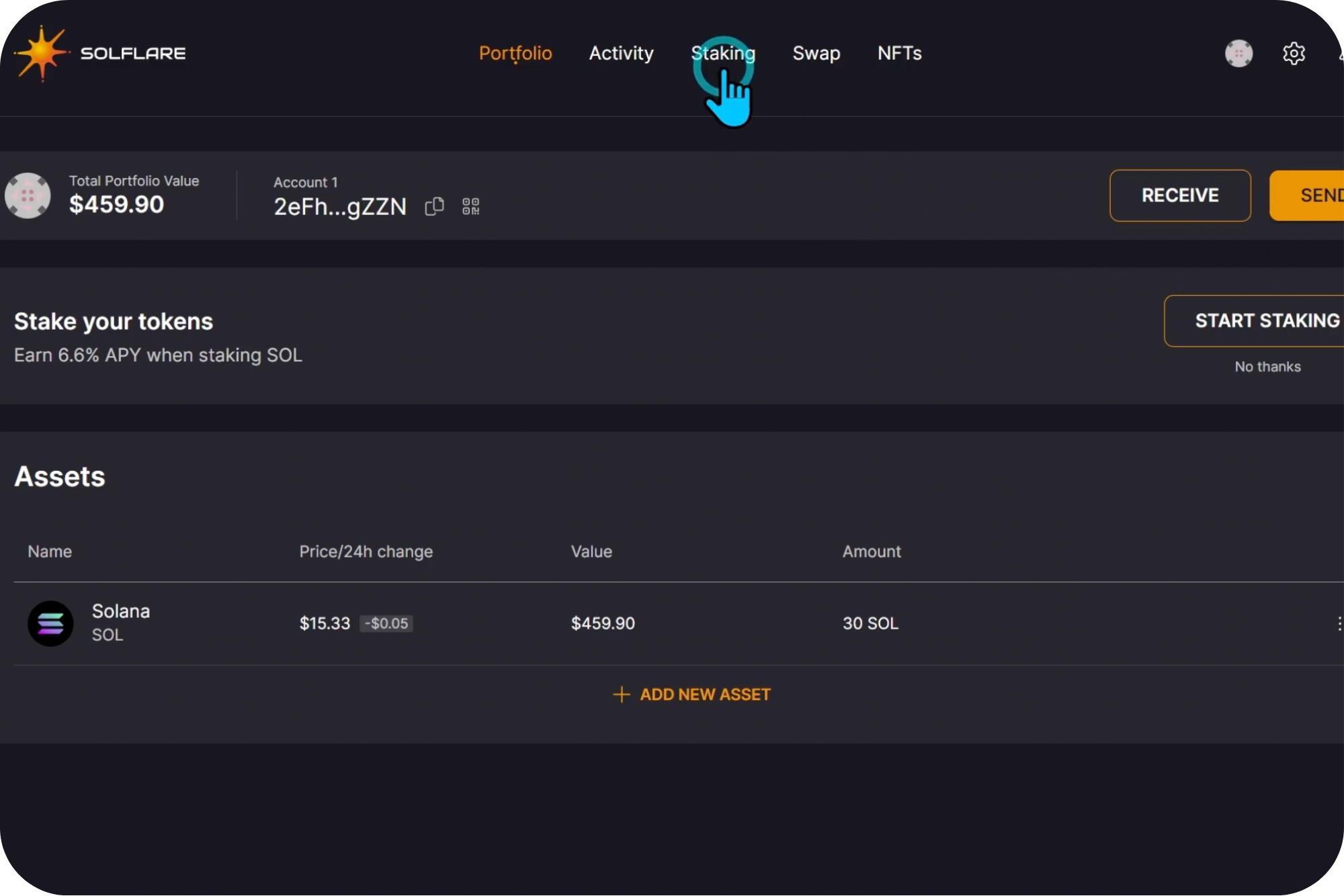 We recommend that you stake from a wallet address that only does staking. This makes it easier for accounting purposes. Your NFTs, DeFi, gaming etc. could be controlled from other wallets.
